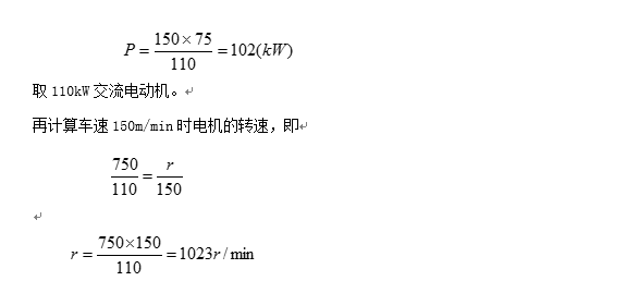 首先计算车速150m/min时所需电机的功率,考虑到纸机为恒转矩负载,车速增高时电机功率按比例增加,于是: