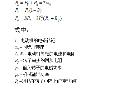 目前国内各类矿山等提升机大都采用交流绕线式异步电动机转子串电阻方式调速方案,使用交流接触器改变转子电阻来进行速度段的切换。对于绕线式电机,无论在起动、制动还是调速中,采用转子串电阻方式均会带来电能损耗。这种损耗随着转速的降低,转差率S的增大而增大。绕线式电机的功率关系为: