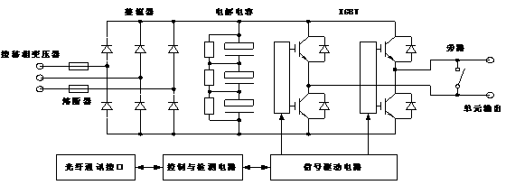 SBH系列高压变频器采取的拓扑结构方式为单元串联型高压变频器,其为直接高-高变换电压源型,变频器基本原理如下图2所示:
