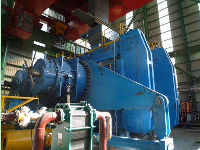 另一个是流量达到2000000 m³/h ,全压达到5900 pa ,功率为5000KW的系统风机。而我们388vip太阳集团高压变频器改造的就是这台系统风机,变频器型号为SBH-100-5600。经过打散粉碎后的物料在挡料锥的导向作用下通过挡料锥外围的环形通道进入在风轮向分布的风力分选区内。物料的分级中的粗颗粒物料由于其运动惯性大,在通过风力分选区的沉降过程中,运动状态改变较小而落入内锥筒体被收集,由粗粉卸料口卸出返回,同配料系统的新鲜物料一起进入辊磨机上方的称重仓。细粉由于其运动惯性小,在通过风力分选区的沉降过程中,运动状态改变较大而产生较大的偏移,落人内锥简体与外锥筒体之间被收集。