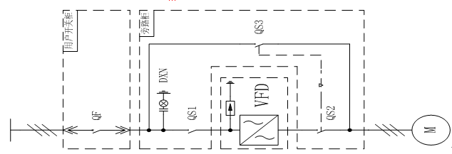 合QS3、分QS1、QS2为工频模式。电机可由QF直接启停并进行保护,变频器可完全和电网脱离,便于维护与检修。