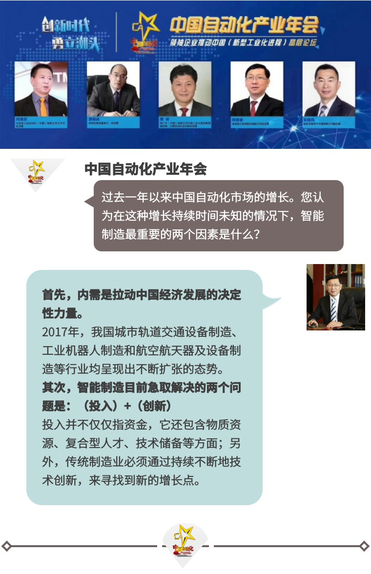 针对过去一年以来中国自动化市场的增长的原因、持续时间,以及智能制造的组成因素等问题,论坛主持人对中国自动化产业的领袖企业高层进行了逐一采访。