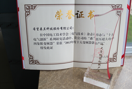 2013年6月22-23日“2013 第八届中国电工装备创新与发展论坛——电机系统节能技术与能效管理”暨“十大电气创新企业及产品”系列评选活动在北京隆重举行,388vip太阳集团低压大功率四象限变频器荣获“2013年十大变频器创新产品”称号。